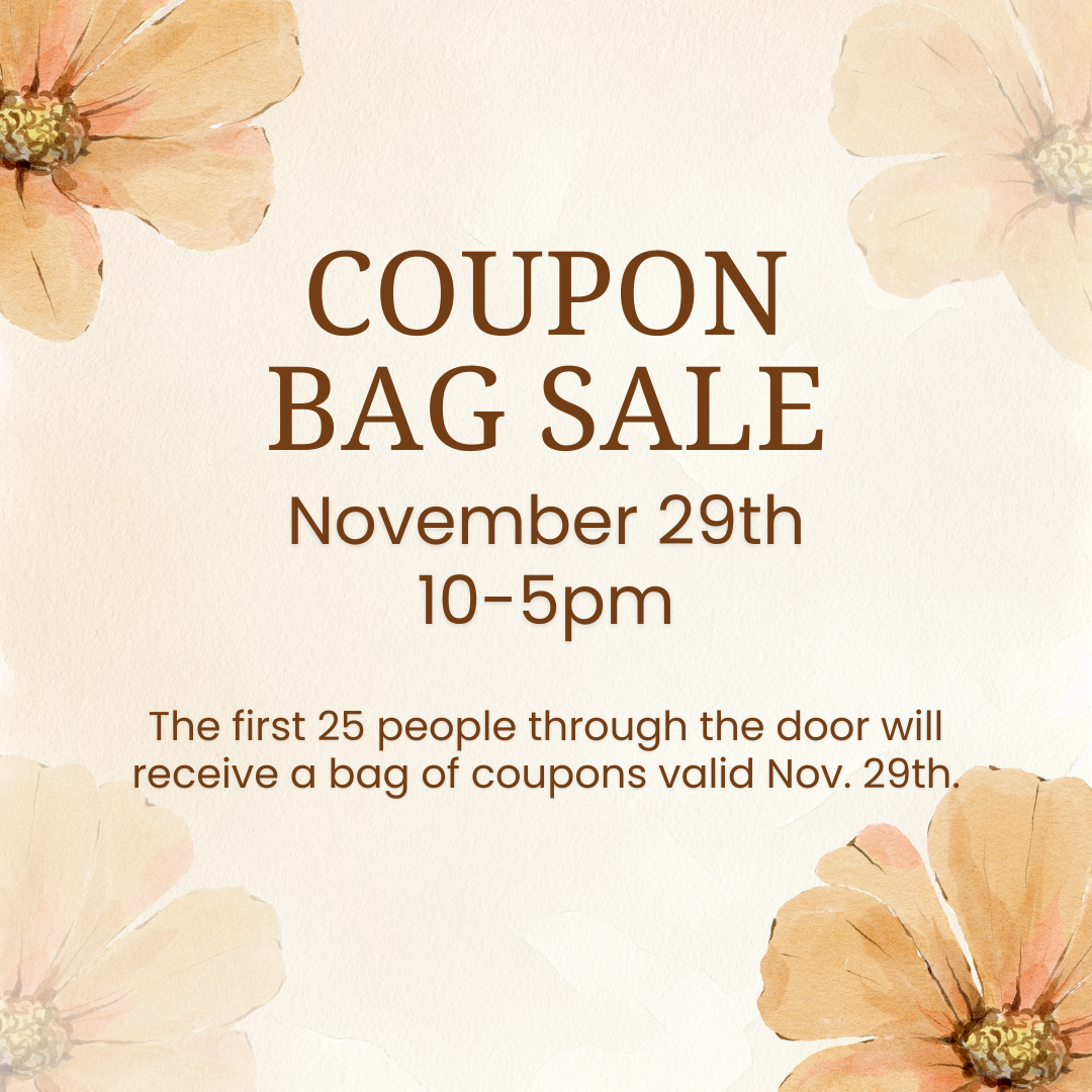 The first 25 customers through the door will receive an exclusive bag of coupons from our vendors — filled with special deals and discounts valid November 29th only!