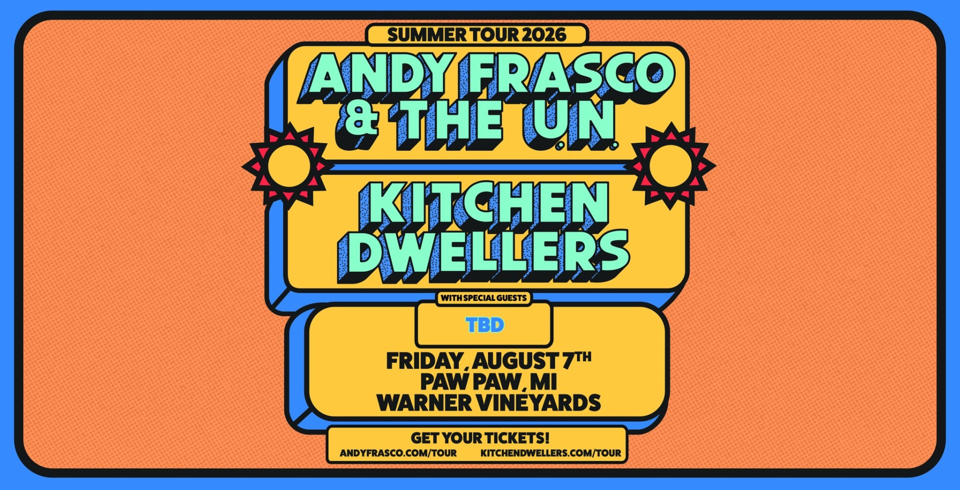 Warner Vineyards and JL Entertainment present Andy Frasco & The U.N. with Kitchen Dwellers Friday, August 7th!