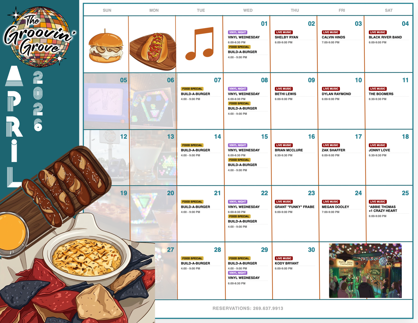 Enjoy live music and great food in one of Southwest Michigan's most unique entertainment venues: The Groovin' Grove!