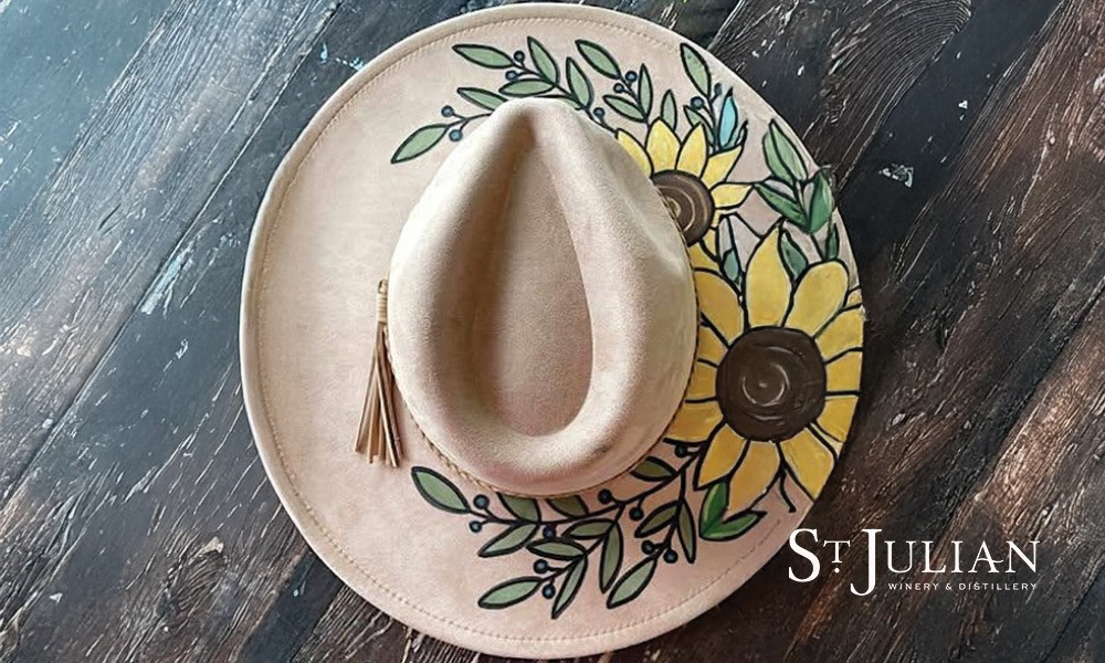 Get ready for a seriously fun night of creativity at the St. Julian Paw Paw tasting room with Great Lakes Crafting! Design and paint your very own one-of-a-kind hat or bag. No experience required, just a good vibe and a little imagination. The hats are a soft, vegan suede with a structured, wide brim. The hats feature an adjustable ribbon and they fit 20-24.5″ heads. The bags are 16″ by 10.5″ in size. Your custom design will be laser-burned onto your hat before you arrive in collaboration with Big Sky Burning, so all you have to do is pick your paint colors, sip your drink, and bring it to life. Whether you’re flying solo or making it a friends’ night out, this workshop is all about relaxing, laughing, and leaving with something totally unique. All supplies included and drinks will be available for purchase! Prices start around $84 per person. Spots are limited. Don’t miss your chance to sip, paint, and wear your art home!