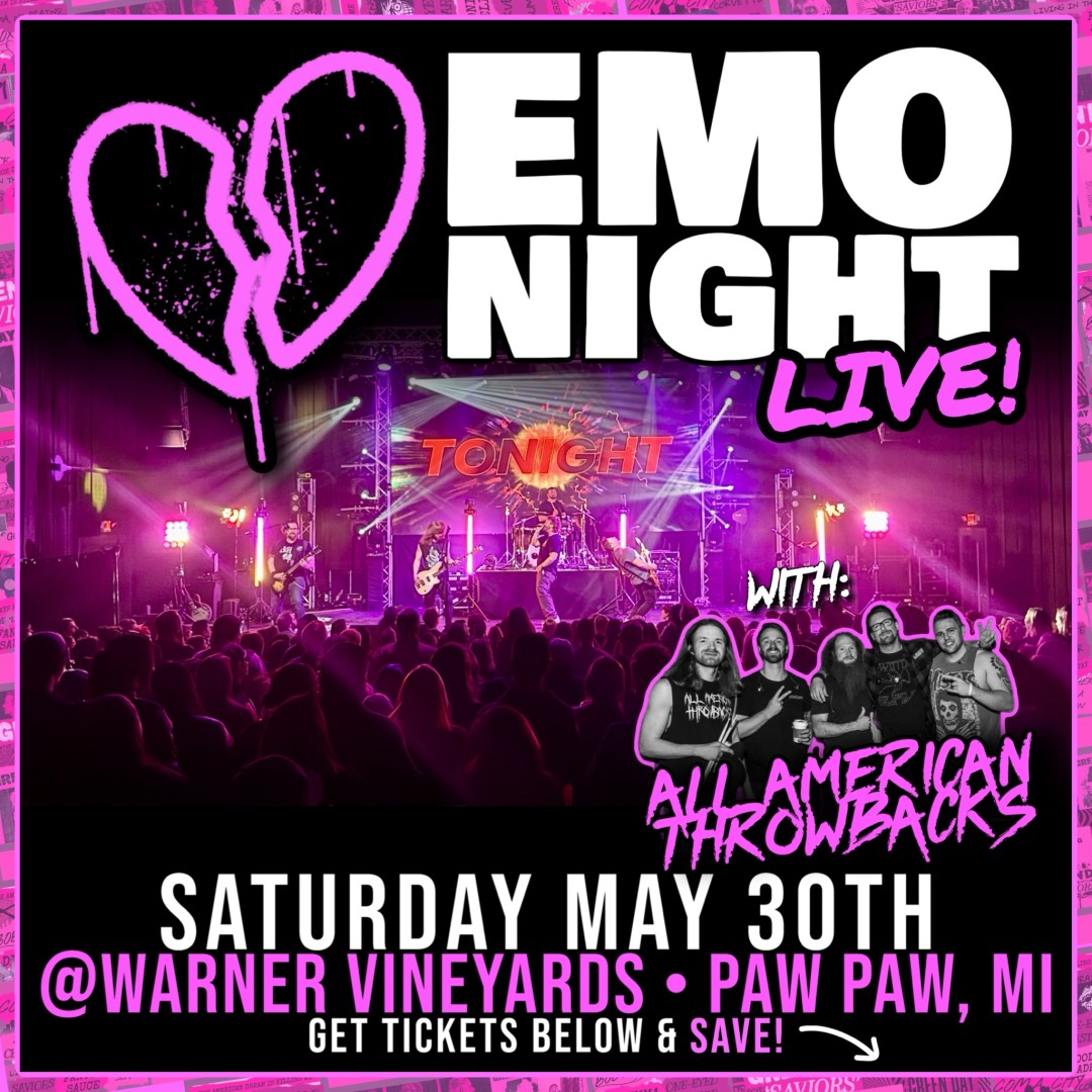 Warner Vineyards and JL Entertainment present EMO NIGHT w/ All American Throwbacks Saturday, May 30th!