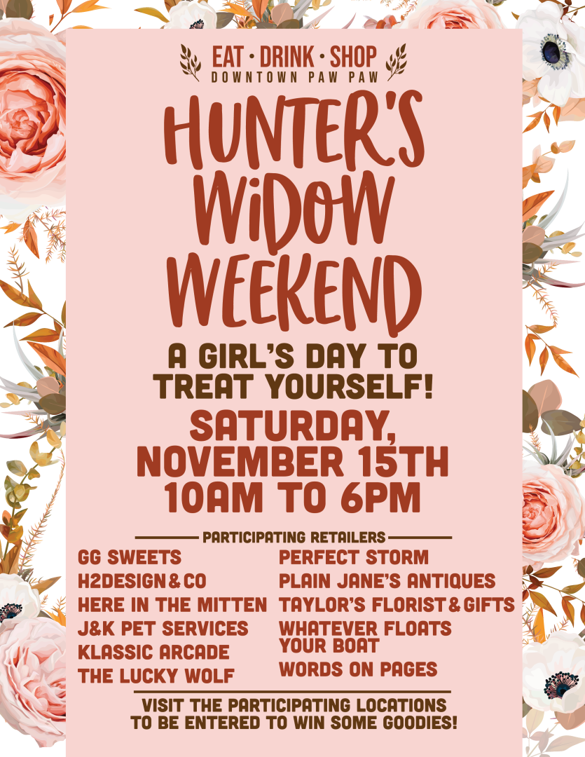 Don't miss out on this fun shopping day in downtown Paw Paw! Each location has fun things planned for the day!!! Mark your calendar, grab a friend and come on down on Saturday, Nov 15th!