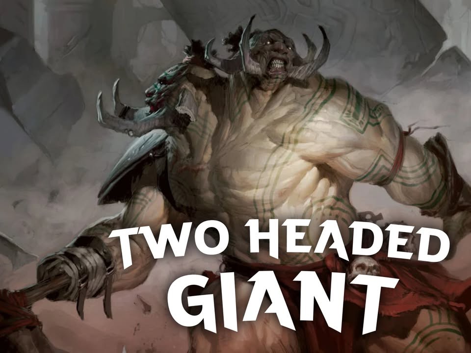 Two-Headed Giant Commander Night is a monthly Commander event in which players can earn promo cards by pairing up to battle other two-player teams. Each player has their own 100-card Commander deck, but they share a 60-point life total. Play follows the normal Two-Headed Giant rules.