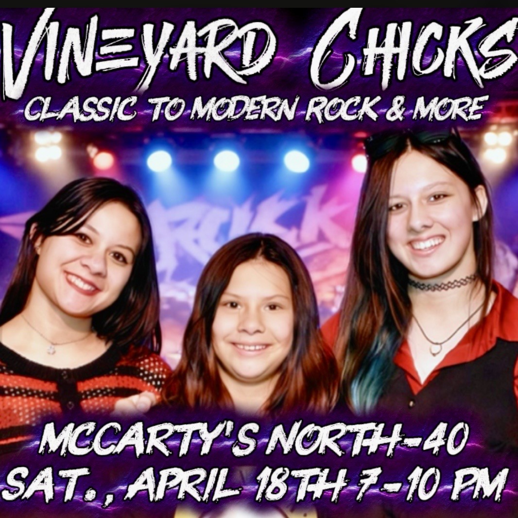 Vineyard Chicks is a 3-sister power band performing classic rock, alternative, pop and more. Enjoy McCarty's fine food & beverages and an evening of great music from this local family band.